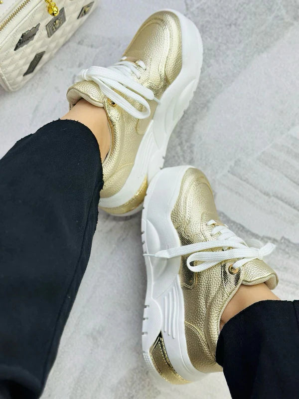 Luce con Distinción ✨👟STANLY es mucho más que un zapato deportivo, es una declaración de estilo.Con un diseño dorado y una plataforma que eleva tanto tu altura como tu actitud, STANLY combina lo mejor del glamour y la comodidad. Perfecto para quienes buscan brillar con un toque sofisticado en cada paso.Haz de cada día una pasarela con STANLY.👉 ¡Eleva tu estilo con la combinación perfecta de diseño y elegancia!